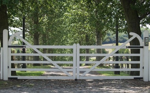 ![]() Gate 38 automated farm style five bar gate on 24 volt underground hydraulic gate motors and GSM intercom and key pad. Gringley Retford |