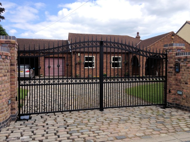 ![]() Gate 40 automated decorative wrought iron gate with underground hydraulic gate automation, vertical saftey edges and GSM intercom. Moss Doncaster |