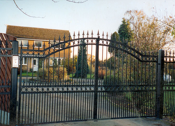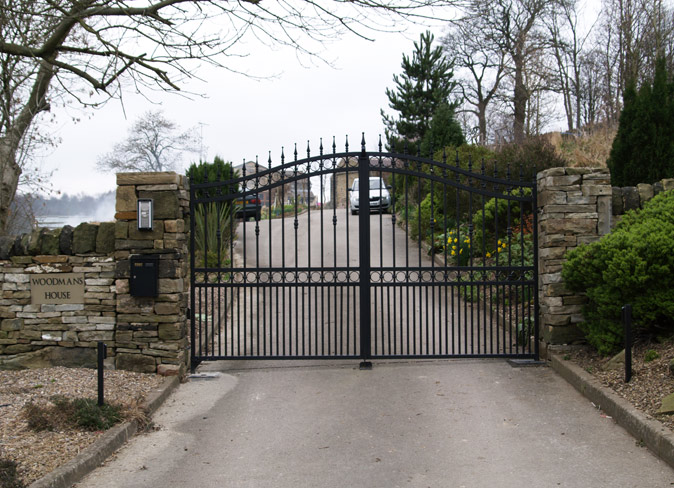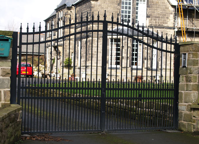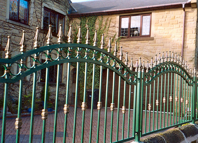![]() Gate 27 Outward opening Electric Wrought Iron Gates and matching railings Penistone, Sheffield |